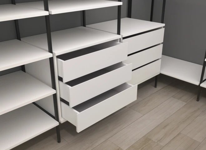 5 полок, комод с ящиками, стойка 1 шт