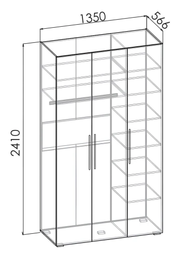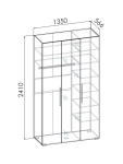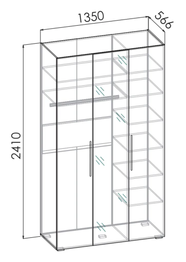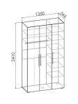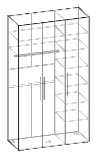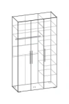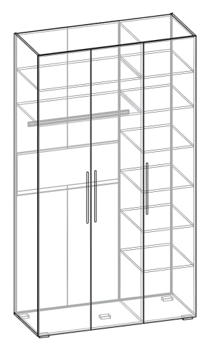 2 секции. В левой - 2 полки и штанга для вешалок, в правой - 6 полок