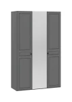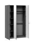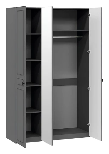 2 секции. В левой - 4 полки, в правой - штанга для вешалок, полка