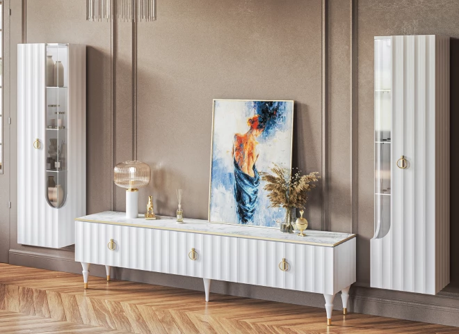 скрытые части ЛДСП, видимые части МДФ в пленке, задняя стенка ХДФ