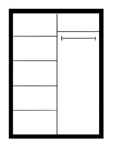 2 секции. В левой - 4 полки, в правой - штанга для вешалок, полка