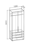 полка, штанга для вешалок, 3 выдвижных ящика