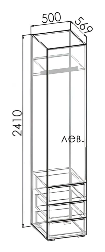 полка, штанга для вешалок, 3 выдвижных ящика