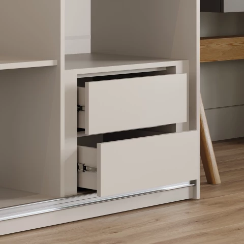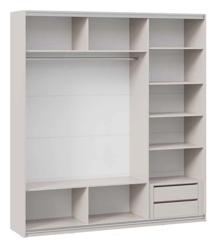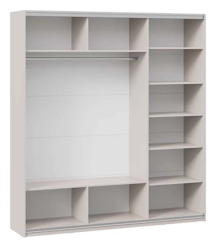 2 секции. В левой - 4 ниши для хранения и штанга для вешалок, в правой - 5 полок