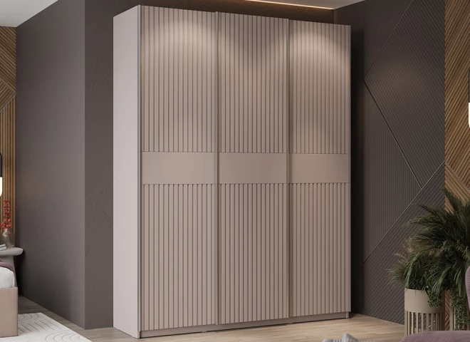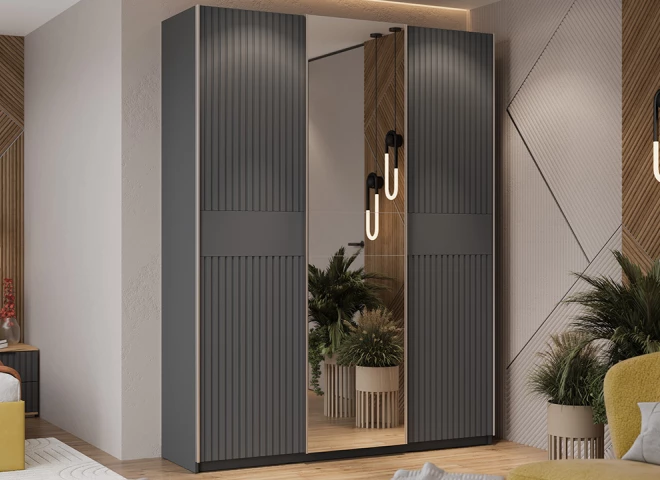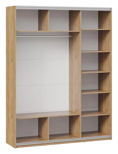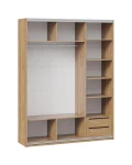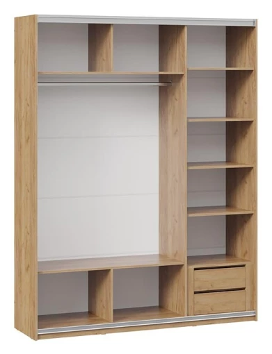 2 секции. В левой - 4 ниши для хранения и штанга для вешалок, в правой - 5 полок