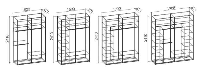 - комплектация 1500 без полок. 3 штанги для вешалок и 3 полки