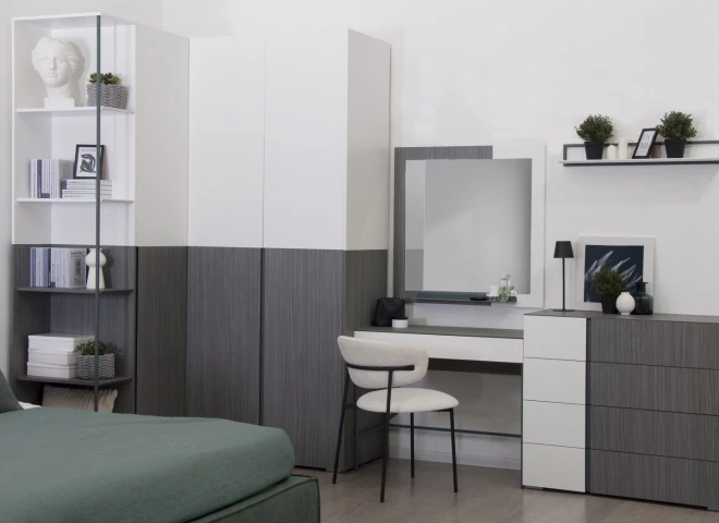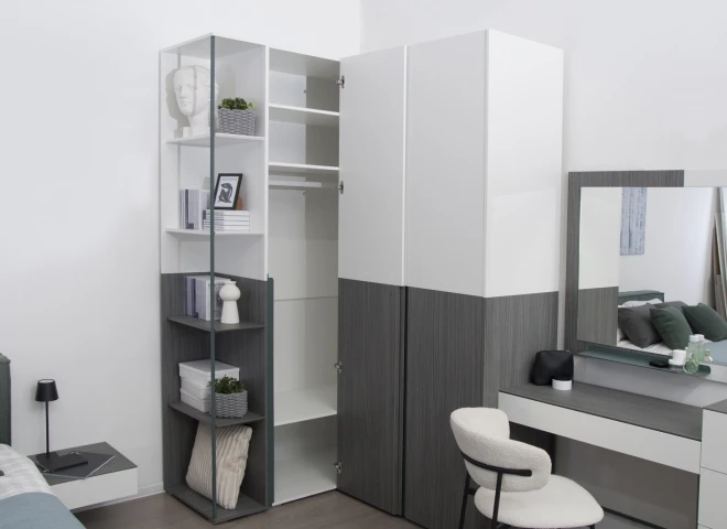 Каркас шкафа и боковины цвета - серый шпон. Установка декоративной боковой накладки в цвет фасада по желанию покупателя