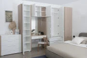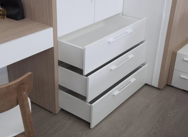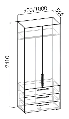 штанга для вешалок, полка, 3 выдвижных ящика