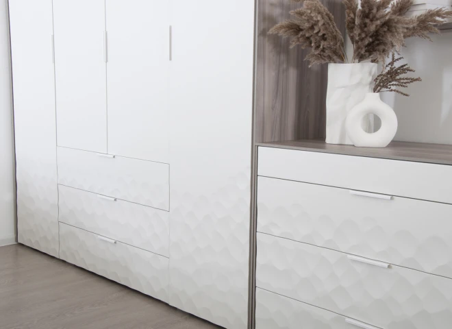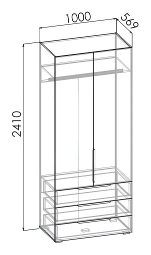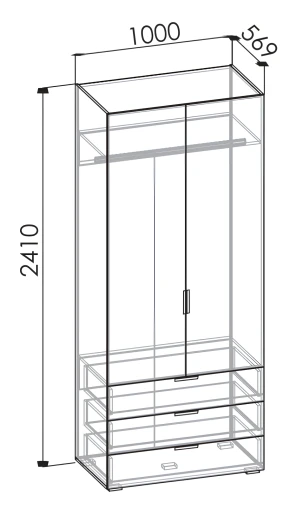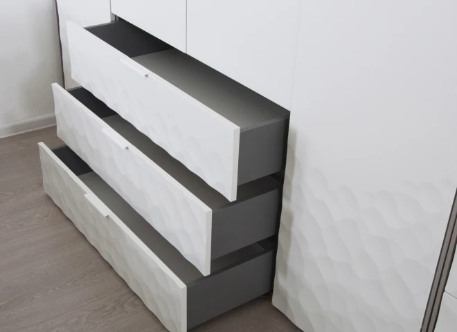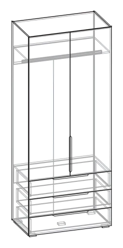 полка, штанга для вешалок, 3 выдвижных ящика