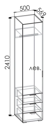 Каркас шкафа и боковины серого цвета. Установка декоративной боковой накладки по желанию покупателя. На фото товар с установленной накладкой