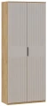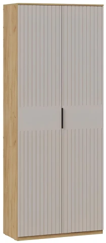 2 полки по ширине шкафа, под ними - слева штанга для вешалок, справа 3 бельевые полки