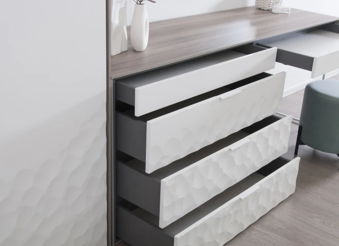 скрытые направляющие с доводчиками, push-to-open, металлические ручки и ножки