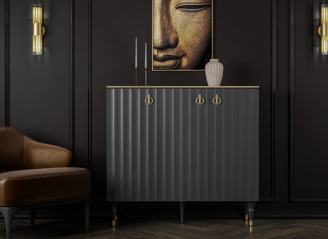 скрытые части ЛДСП, видимые части МДФ в пленке, задняя стенка ХДФ